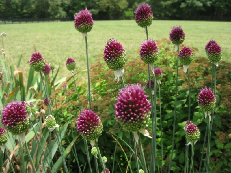 Бордовые соцветия этого лука размером с грецкий орех, замечательно смотрятся в групповых посадках, зимних и летних букетах​.