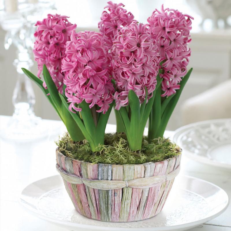 В этот период важно соблюдать температурный режим. В течение 5-6 дней для растений нужна температура 17-18°С, а затем ее можно повысить до 22°С. Причем, регулируя температуру, вы сможете сами управлять продолжительностью цветения. Так, при 10-12°С оно может длиться 20-25 дней, при 20-22°С всего 15-18 дней. Обычно гиацинты начинают цвести через три недели после того, как их заносят в теплое помещение.