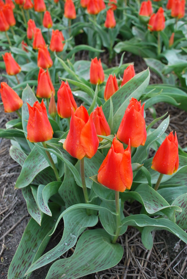 Участок с тюльпанами желательно мульчировать слоем торфа или сухих листьев.