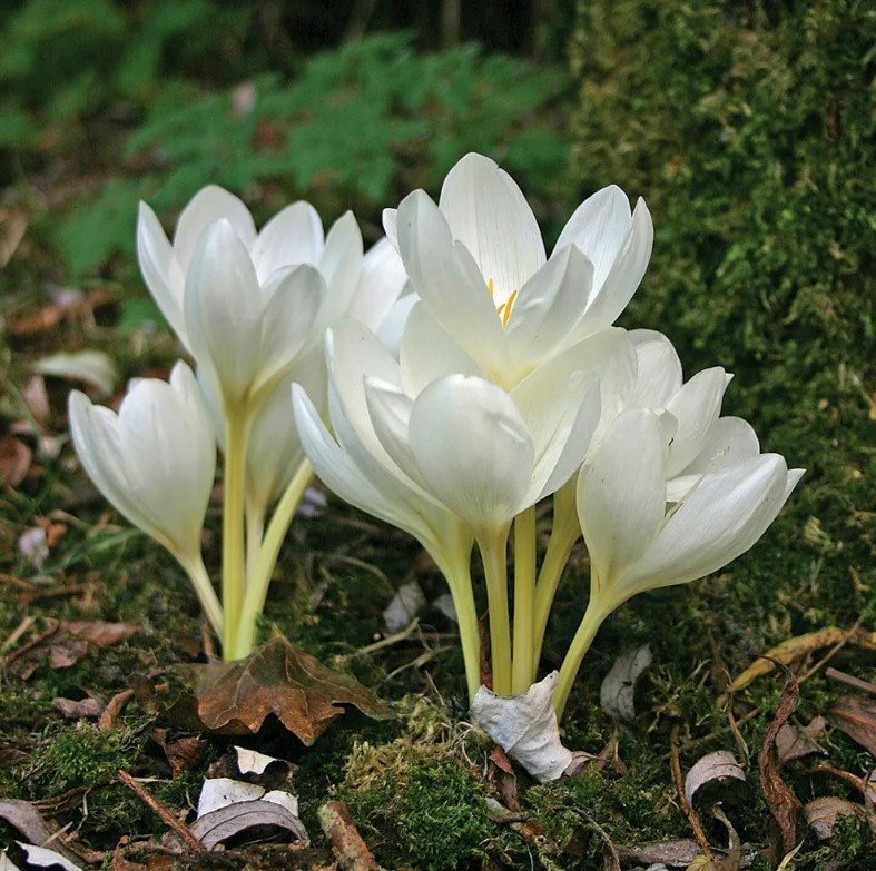 Безвременник Альбум - красивая крупноцветковая садовая форма с молочно-белыми цветками диаметром до 12 см. Цветёт со второй половины сентября.