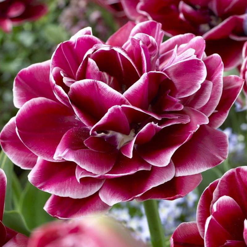 Тюльпан "Прикосновение мечты" вызовет восторженный возглас у всякого, кто зайдет в Ваш сад! Каждый из многочисленных фиолетово-лиловых лепестков подчеркивается серебристо-белой каймой. Эти чашевидные махровые цветки будут напоминать пионы благодаря насыщенному цвету и многослойным тонким лепесткам. Самые впечатляющие ландшафтные композиции получатся, если высадить этот сорт группой или вдоль бордюра. Также можно получить фантастические сочетания в букетах после срезки!