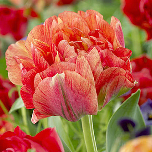 Старый, хорошо известный сорт Gudoshnik дал густомахровый спорт, который голландские производители, недолго думая, назвали Gudoshnik Double. Конечно, немного смешное для нашего уха название, но сам тюльпан очень красив.