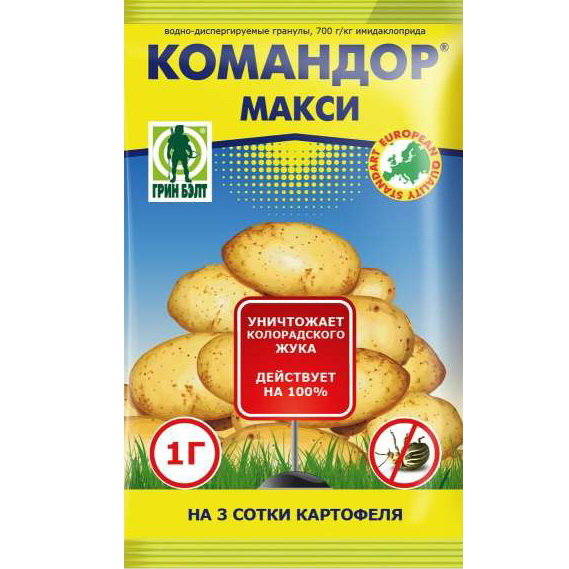 | картофель | колорадский жук | 0,3 г на 5 л воды | 5 л на 1 сотку |
