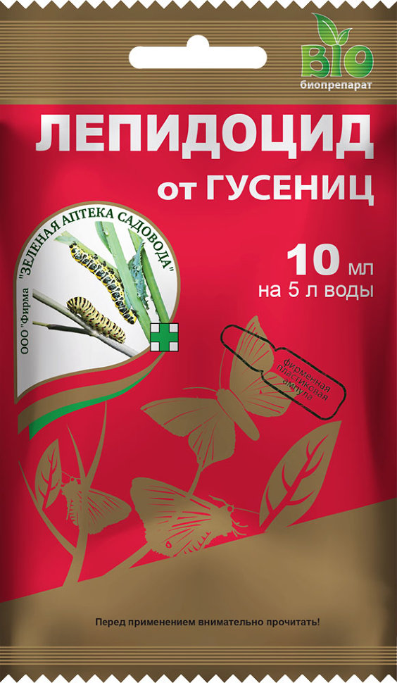 Как применять: опрыскивать растения в ранние сроки развития вредителей в теплую погоду; повторять обработки с интервалом в неделю. Действие и результат: белковый токсин, содержащийся в препарате приводит к параличу пищеварительного тракта вредителя в течение 4-х часов; гусеницы перестают питаться, двигаться; массовая гибель вредителей наступает на 3-7 сутки. Безопасность и экология: 4 класс (малоопасное вещество); безопасен для пчёл и полезных насекомых. Препаративная форма и действующее вещество: Суспензионный концентрат, микробная культура Bacillus thuringiensis, БА-2000 ЕА/мг.