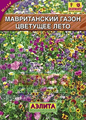 Специальная смесь для цветущего газона. Устойчивые многолетние злаки (мятлик, овсяница, райграс, полевица) служат фоном для пестрого микса неприхотливых цветов дикой флоры. Ароматные цветы привлекают бабочек и пчел. Подбор растений обеспечивает максимально длительный период цветения. Наряду с привычными однолетниками в смеси присутствует 4 вида клевера, фацелия и люцерна. Эти красивоцветущие растения известны как улучшители структуры и плодородия почвы.