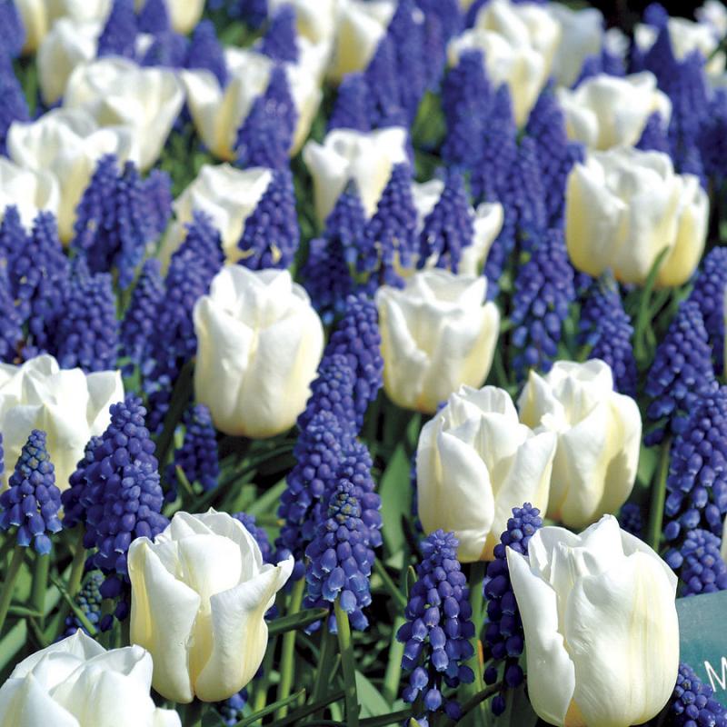 Хорошо подобранные по времени и высоте цветения, эти луковицы создают полосу сочетания синего и цвета слоновой кости, которая выглядит почти волшебно в саду в начале сезона или в ваших контейнерах!