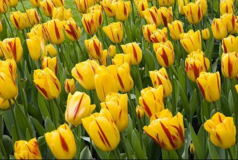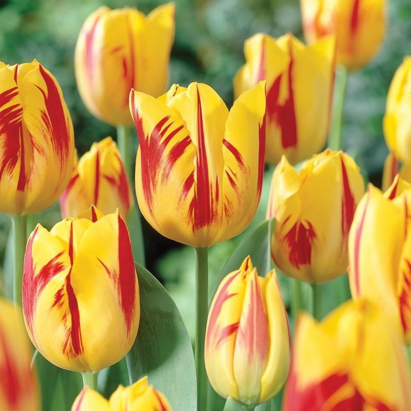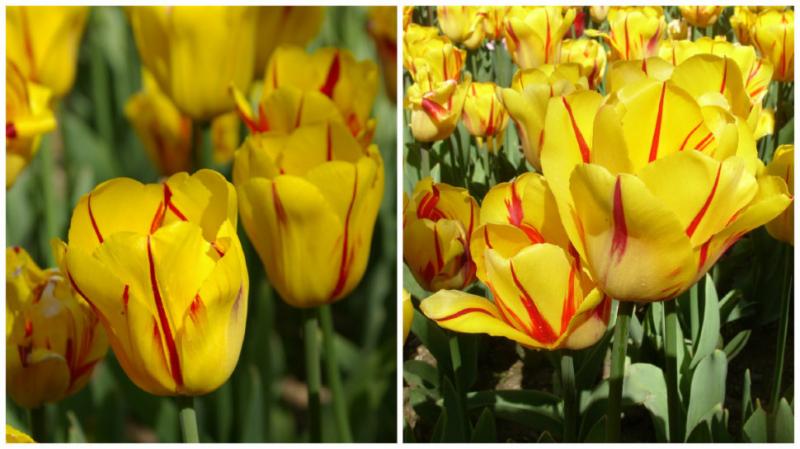 Сорт с ярко-жёлтыми бутонами и центральными красными перистыми штрихами на внешней стороне лепестков. Прекрасно смотрится в саду, дает отличную срезку.