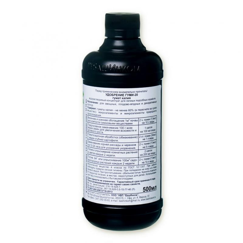 Препаративная форма: Жидкость. Товарная форма и упаковка: Флакон. Гуматы калия не менее 60%, макроэлементы и микроэлементы природного происхождения. Защищаемые культуры: Все садовые, огородные и цветочные растения.