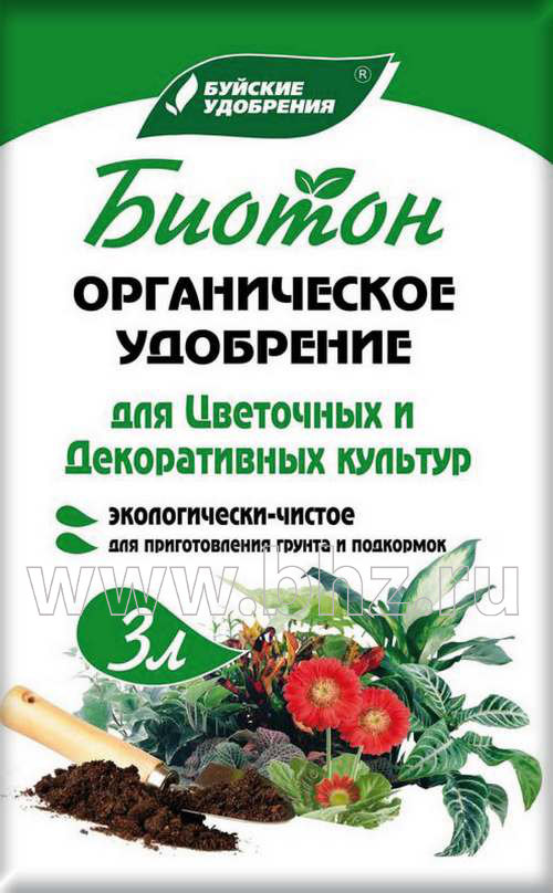 «Биотон» содержит полный набор макроэлементов: азот, фосфор, калий, кальций в доступной для растений форме, а также микроэлементы и аминокислоты. В результате его применения улучшается плодородие и структура почвы за счет высокого содержания гуминовых соединений и полезных микроорганизмов.