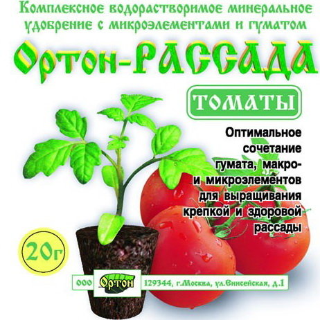 Ортон-Рассада для томатов - комплексное водорастворимое бесхлорное органоминеральное удобрение, обеспечивает растения азотом, фосфором, калием, а также микроэлементами в соотношении, необходимом для ранних стадий развития.