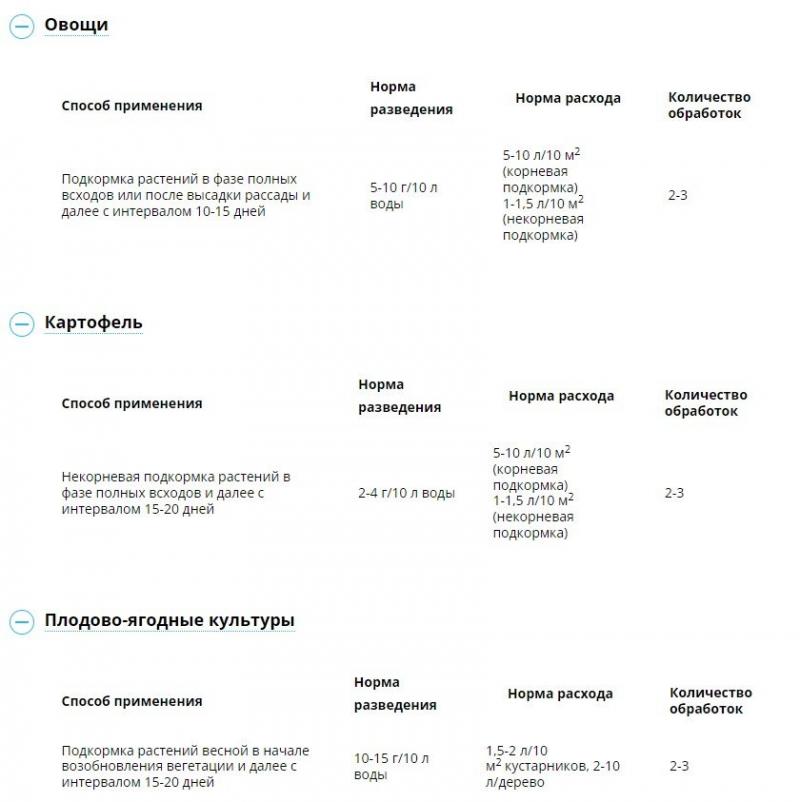 Технология применения агрохимиката: подкормка растений путем полива (традиционный полив, капельный полив, орошение и пр.) или опрыскивания растений с использованием всех видов и систем полива или опрыскивания (лейки, опрыскиватели, пульверизаторы и другой ручной инвентарь).