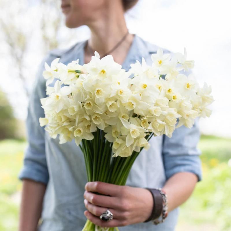 Этот чудесный сорт сочетается с любыми нарциссами и мелколуковичными, особенно кобальтовыми мускари. Цветки облдают нежным сладковатым ароматом.