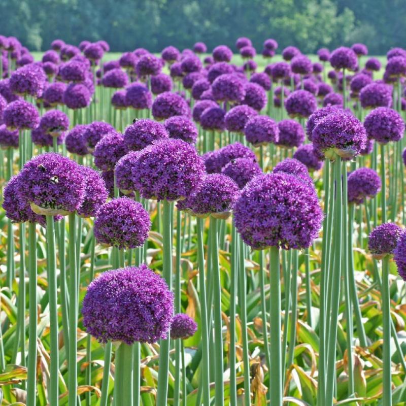 Высокий, с ярко-лиловыми плотными головками звездообразных цветков. Будет хорош не только в композиции с другими весенними луковичными, но и сам по себе.