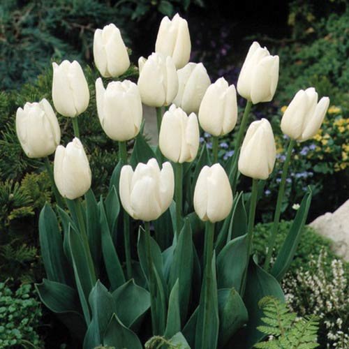 Очень популярный сорт тюльпанов Hakuun из Голландии от своих многочисленных собратьев отличается именно цветом. Дарвиновы Гибриды могут быть самыми разными в плане окраски, но обычно в основе лежат красно-оранжевые тона. Hakuun с этим буйством красок не имеет ничего общего – он белоснежный. Обладает высокой сопротивляемостью любым неблагоприятным факторам, долго стоит в срезке. Потрясающе декоративный сорт!