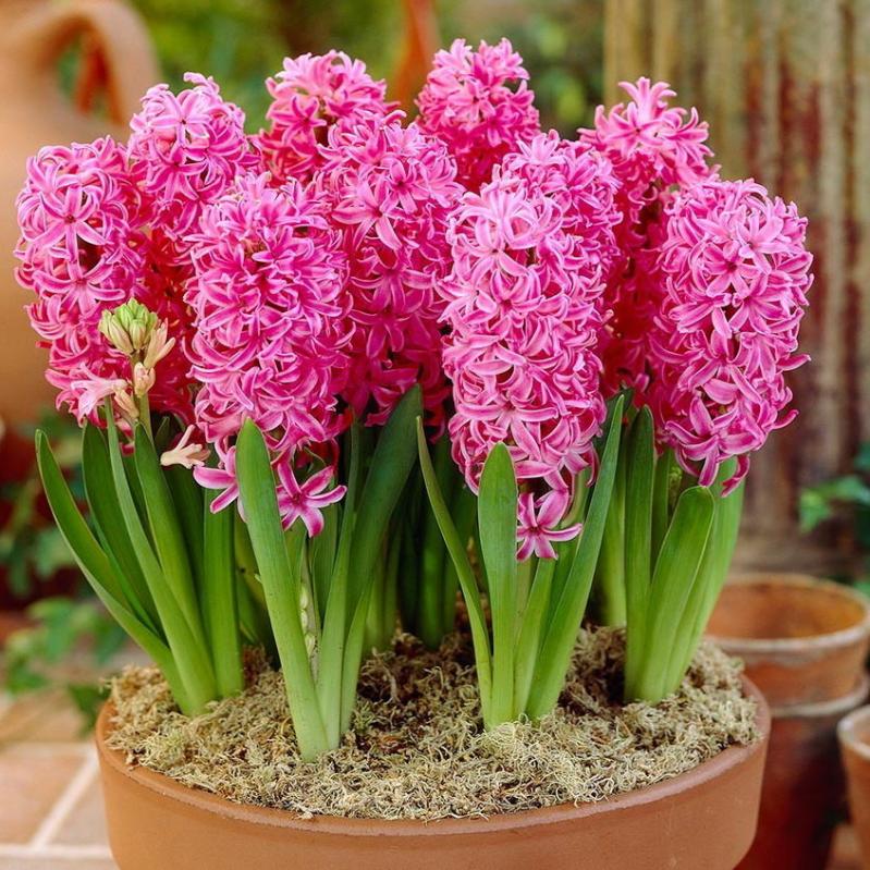 В этот период важно соблюдать температурный режим. В течение 5-6 дней для растений нужна температура 17-18°С, а затем ее можно повысить до 22°С. Причем, регулируя температуру, вы сможете сами управлять продолжительностью цветения. Так, при 10-12°С оно может длиться 20-25 дней, при 20-22°С всего 15-18 дней. Обычно гиацинты начинают цвести через три недели после того, как их заносят в теплое помещение.