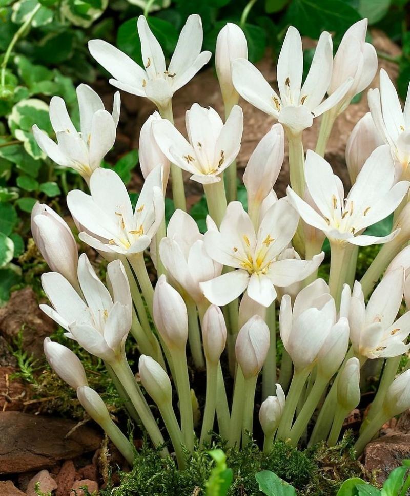 Безвременник Альбум - красивая крупноцветковая садовая форма с молочно-белыми цветками диаметром до 12 см. Цветёт со второй половины сентября.