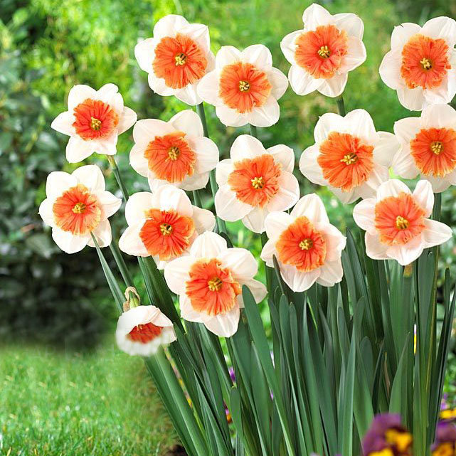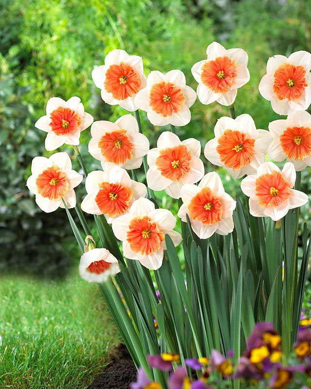 Белый с большой сильно приплюснутой и гофрированной кораллово-розовой трубкой; цветки этого сорта заметны с большого расстояния и хочется подойти и рассмотреть их поближе.