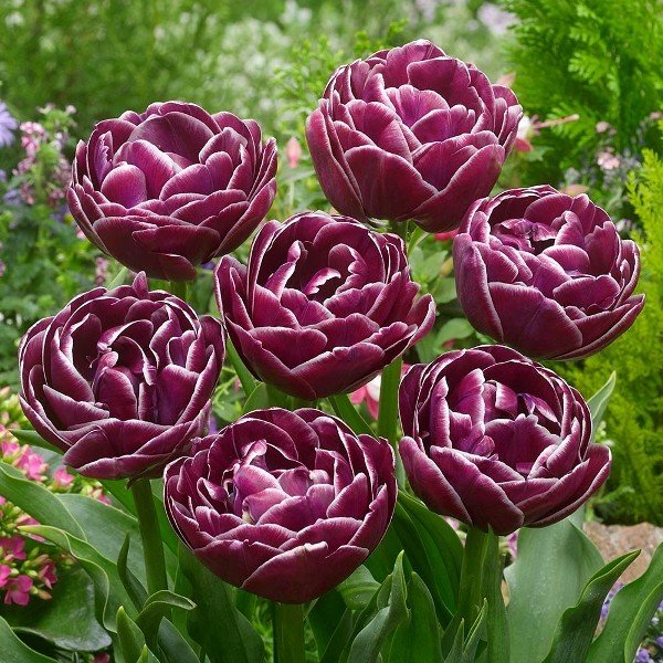 Тюльпан "Прикосновение мечты" вызовет восторженный возглас у всякого, кто зайдет в Ваш сад! Каждый из многочисленных фиолетово-лиловых лепестков подчеркивается серебристо-белой каймой. Эти чашевидные махровые цветки будут напоминать пионы благодаря насыщенному цвету и многослойным тонким лепесткам. Самые впечатляющие ландшафтные композиции получатся, если высадить этот сорт группой или вдоль бордюра. Также можно получить фантастические сочетания в букетах после срезки!