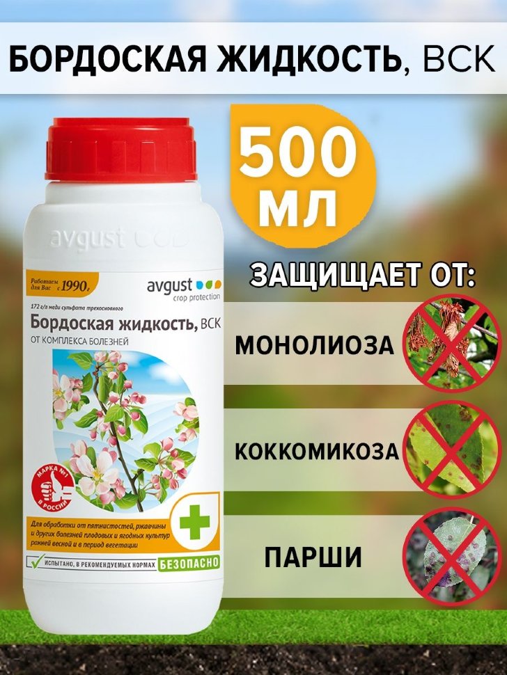 Бордоская жидкость применяется для защиты плодово-ягодных культур от грибных и ряда иных заболеваний. Препарат относится к категории контактных фунгицидов и представляет собой водно-суспензионный концентрат (ВСК) трехосновного сульфата меди. Готовая Бордоская жидкость во флаконе отличается эффективным действием и удобством применения, благодаря чему получила широкое применение в личных подсобных хозяйствах и на дачных участках.