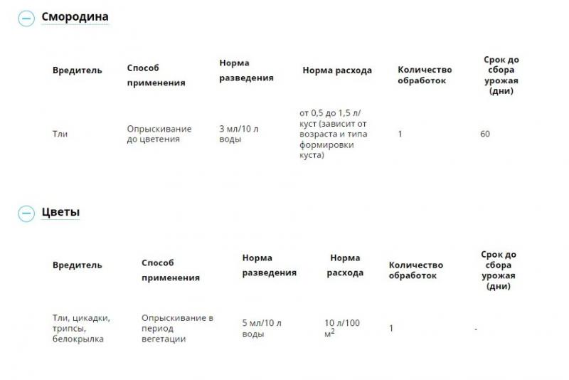 Системный препарат для уничтожения различных видов тли на плодовых, ягодных, овощных и цветочных культурах. Эффективен против насекомых, скрытоживущих и питающихся на нижней стороне листа. Обладает высокой скоростью воздействия - эффект от обработки наблюдается уже через несколько часов. Не вызывает привыкания у вредителей.