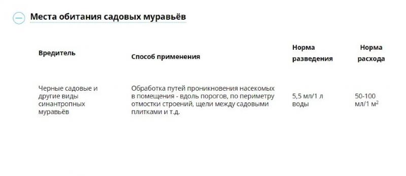 «Муравьед» — препарат контактно-кишечного действия. Применяется на приусадебных участках, отмостках домов, в щелях между садовыми плитами. Он попадает в организм насекомых, оказывая губительное влияние на их нервную систему: вызывает торможение мышечной деятельности, судороги, а затем полный паралич.