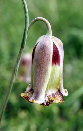 В апреле этот рябчик зацветает особым образом окрашенными цветками: светло-зеленый с внутренней стороны венчик долей около цветника, с внешней – темно-пурпурный и желто-зеленый с каштановыми прожилками.