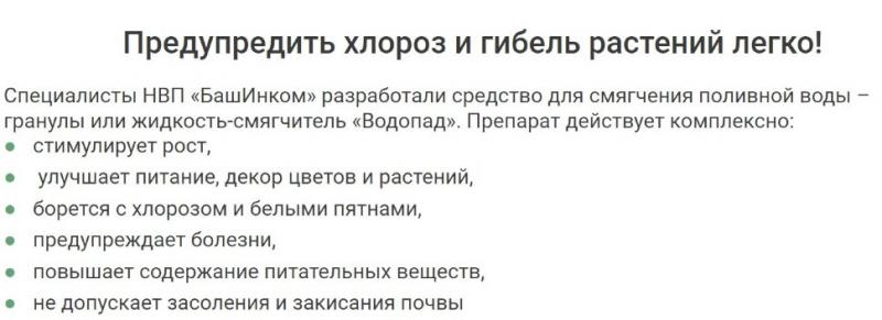 Смягчитель поливной воды (снижает жёсткость), структурирует поливную воду до живой, талой. Препарат снижает жёсткость поливной воды. Стимулирует рост, улучшает питание, декор цветов и растений, убирает белесые пятна, хлороз. Обеспечивает профилактику болезней, повышение иммунитета, защиту от стрессов, повышает эффективность использования питательных веществ, не допускает засоления и закисания почвы. Преимущества: Стимулирует рост, улучшает питание, декор цветов и растений, убирает белесые пятна, хлороз. Обеспечивает профилактику болезней, повышение иммунитета, защиту от стрессов, повышает эффективность использования питательных веществ, не допускает засоления и закисания почвы. Одного флакона хватает на 25 л поливной воды. Препаративная форма: Жидкость. Товарная форма и упаковка: Флакон. Состав препарата: Комплекс ионитов, тест-полоска по определению жёсткости. Защищаемые культуры: Все садовые, огородные и цветочные растения.