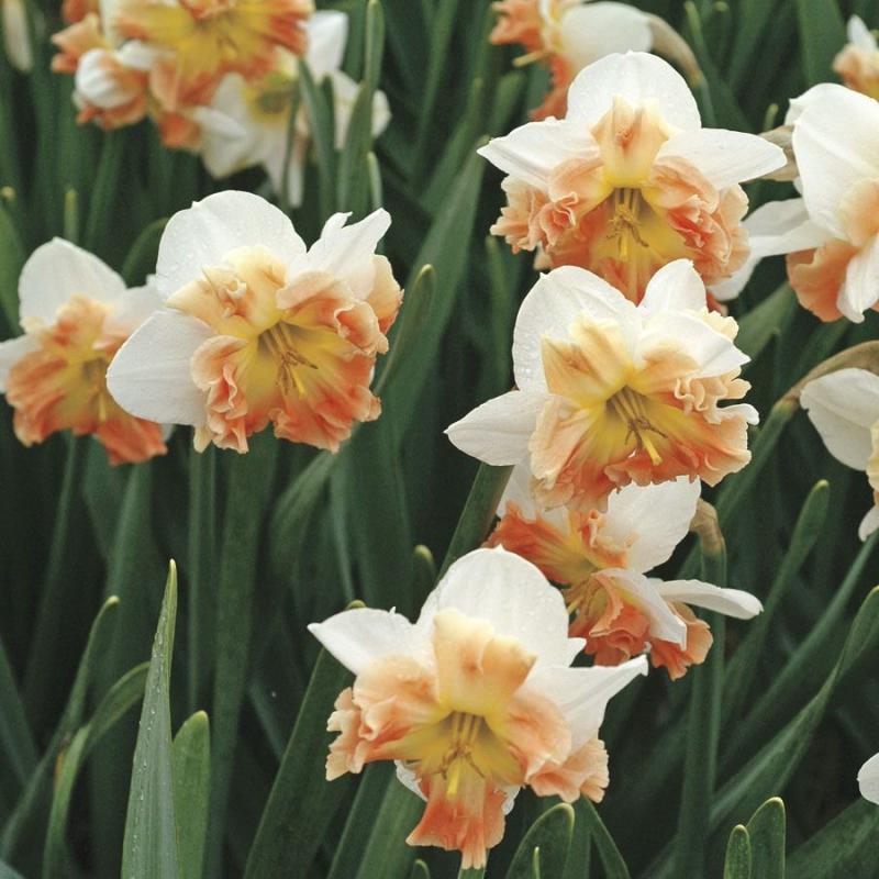 Белый с ярко-лососевой каймой по краю гофрированной коронки. Цветок крупный, диаметром 10 см и более, смотрит в сторону или чуть вверх. Цветонос прочный, до 55 см высотой. Сильный аромат, сравнимый с запахом гиацинта.