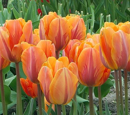 Посадка: Тюльпаны высаживают рядами шириной 20-25 см. Глубина посадки луковицы зависит от её размера: слой почвы от донца луковицы до поверхности земли составляет 2 высоты луковицы на тяжелых почвах, и 3 высоты луковицы на легких почвах. Расстояние между луковицами в рядке 10-15 см.