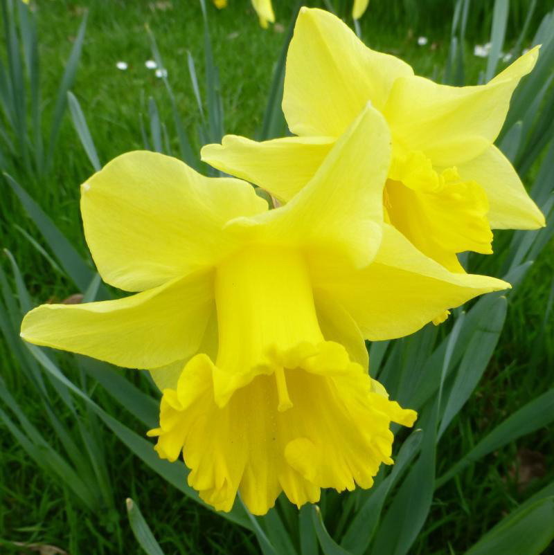 Раннего срока цветения. Околоцветник округлый, желтый. Коронка воронковидная, чаша, гофрированная по краю, ярко-желтая.