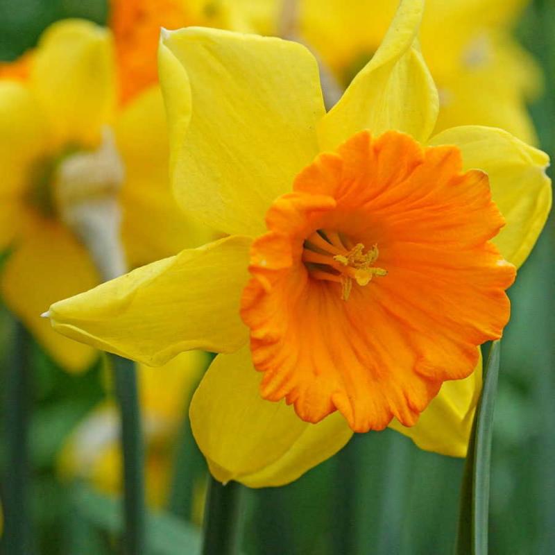 Классическое сочетание желтого околоцветника и ярко-оранжевой трубки с изящно гофрированными краями.
