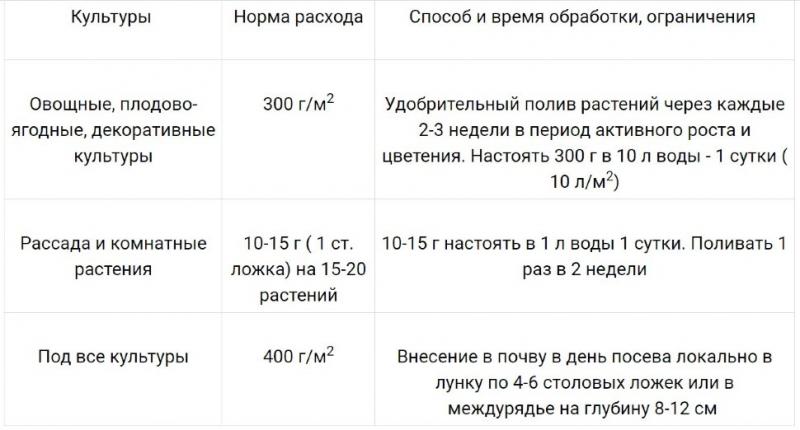 Преимущества: Не содержит семян сорняков, болезнетворных микроорганизмов, спящих вредителей и яиц гельминтов. Экономичен – упаковки хватает на 70 л рабочего раствора при удобрительном поливе 7 м2 овощных, плодово-ягодных, декоративных культур, либо на 5 м2 при локальном внесении в лунку по 4–6 столовых ложек или междурядье на глубину 8–12 см под все культуры, либо на 200 л рабочего раствора для удобрительного полива на 400 корней рассады и комнатных растений. Обладает пролонгированным действием.